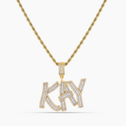 The Baguette Name Pendant shines with bold baguette-cut stones and a custom design. Paired with a matching chain, it is perfect for a standout look.