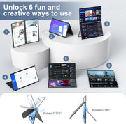 Easily folds for travel or storage. Includes a 180° adjustable stand and gravity sensor for automatic screen rotation and vertical stacking—ideal for coders and data professionals.
