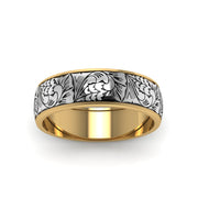 The intricate pattern wedding band is prettified with lovely engravings along the thick band which will be a wonderful display of affection for your beloved.
