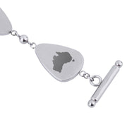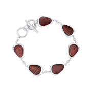 Stainless Steel water drop link bracelet with Jarrah timber inlays. Adjustable toggle and loop closure.