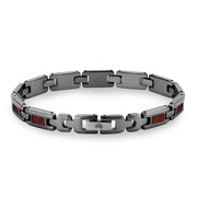 Ladies Gunmetal plated stainless steel link bracelet with Australian Jarrah wood inlays. Links are removable to adjust for size.