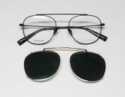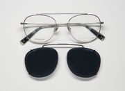 A set of optional sunglass clip-on lenses is included. Clip-ons are a convenient and affordable way for eyeglass users to shield their eyes from the sun's damaging rays and blinding glare. Clip-on sunglass lenses offer great flexibility for those who do not want to invest in two separate pairs of glasses. They clip on and off easily, usually with one hand.