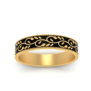 An intricate leaf design is carved elegantly on the lustrous black enamel revealing the smooth and glossy gold alloy all through the Leaf Enamel Gold Mens Wedding Band Ring which is further enriched with the aesthetic milgrain design highlighting the perfect blend of charm and flamboyance.