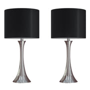 Lenuxe 24' Contemporary Metal Table Lamp Set in Polished Nickel with Black Silk-like Shade