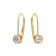 The Lever Back Bezel Set Round Diamond Earrings from Fascinating Diamonds features a brilliant round diamond securely nestled in a sleek bezel setting, radiating light from every angle. The lever-back design ensures both comfort and security.
