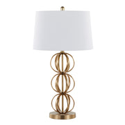 Linx 29" Contemporary Metal Table Lamp in Gold Metal and White Linen Shade - Set of 2