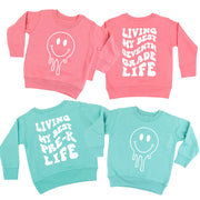 Living My Best (Choose Your Grade) Life - Melty Smiley (f & b) - Child Sweater