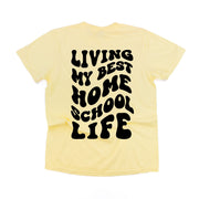 Living My Best Home School Life - Melty Smiley (pf & b) - Comfort Colors Tee