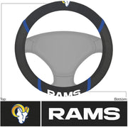 Los Angeles Rams Steering Wheel Cover Premium Black Embroidered 15 Inch