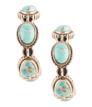 Experience the artistry of our Luxurious Blue Turquoise Golden Hoop Earrings, crafted and hand-finished with precision. Expertly designed with elegant golden bronze and stunning blue turquoise stones, each earring measures 1.12" in length, with a widest point of .37". Feel the total weight of 11.55g as you adorn yourself with these exquisite earrings.