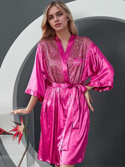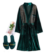 Elevate your bridal party look with this stunning satin robe adorned with shimmering rhinestones. Perfect for brides and bridesmaids, this robe features a soft satin fabric that feels luxurious against the skin. Designed with a flattering waist tie and intricate rhinestone detailing on the chest and back, it adds a touch of glamour to your wedding preparations. Available in bold colors like deep red, emerald green, and fuchsia pink, this robe is a picture-perfect choice for your bridal party photos. Whether you're preparing for your special day or giving a thoughtful gift, this robe ensures everyone feels like royalty.