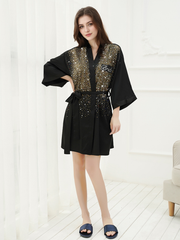 - Design: Relaxed fit with a waist tie and dazzling rhinestone details.