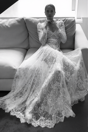 Luxury Long Sleeve Lace Sheer Robe Dress | Bridal Getting Ready & Boudoir Gown