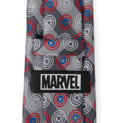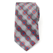 Defend your sense of style with our Captain America Gray Stripe Men's Tie! This tie is designed with slate gray and silver diagonal stripes to compliment and enhance Captain America's Shield; woven in both full color and white. Imbued with the power of superhero craftsmanship, our Silk Blend tie is built to withstand the mightiest battles while making sure you'll always maintain your sharp, heroic look. Officially licensed by Marvel.