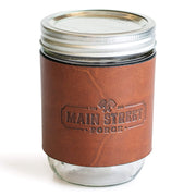 The ball jar jacket’s thick full grain leather features a stylishly engraved Main Street Forge logo, with the sturdy handle fastened firmly in place. Choose from 7 unique colors: Avalanche Gray, Midnight Black, Charred Oak, Whiskey Barrel, Bootlegger Brown, Rio Latigo.