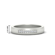 • Accent Stones: 9 accent stones of 0.09 ctw. with SI1 clarity and G color, and 4 mm width are arranged elegantly in a Mens 9 Stone Simple Diamond Band.