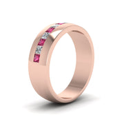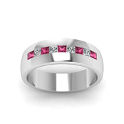 • Accent Stone Types: Accent stone options for the Channel Set Square Diamond Band are White Diamonds, Blue Sapphire, Pink Sapphire, Red Ruby & Black Diamond.
