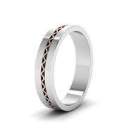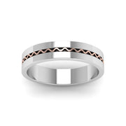 The Mens Wave Comfort Fit Wedding Ring from Fascinating Diamonds features a glossy and refined finish, enhanced by a graceful wave design in the center, complemented by a stunning two-tone pattern that elevates your overall look making it a timeless addition to your jewelry collection.