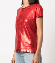 Description: The Madison Maison Red/Red Lamina T Shirt is a red t-shirt with red foil overlay foiling.