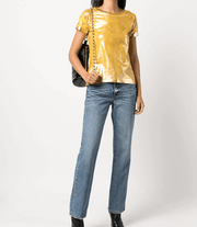Description: The Madison Maison Yellow/Gold Lamina T Shirt is a yellow t-shirt with gold foil overlay foiling.