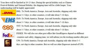 5. Waktu pemrosesan pesanan: antara 6-10 hari. (Kecuali untuk pesanan mendesak, tidak termasuk waktu pengiriman), waktu pengiriman tergantung pada pilihan anda, pengiriman standar Aliexpress 15-25 hari, DHL 4-7 hari untuk tiba,. Jika Anda membutuhkan pesanan yang dipercepat, silakan hubungi kami sebelum melakukan pemesanan. Terima kasih.