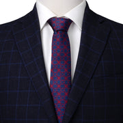 Elevate your look with our Navy/Red Patterned Men's Tie, a wardrobe staple that exudes confidence and sophistication. This tie is meticulously crafted from premium silk, known for its lustrous finish and unparalleled softness, ensuring a touch of luxury with every wear. Our Navy/Red Patterned Men's Tie The striking pattern features a dynamic interplay between deep navy and bold red, creating a visual harmony that is both classic and contemporary. Ideal for the modern gentleman who values timeless elegance and a bold statement, this silk tie is versatile enough to complement a wide range of professional and formal ensembles. Elevate your look with this exquisite accessory, designed to make a lasting impression with its refined style and quality craftsmanship.