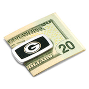 Show your allegiance to your favorite football team all day, everyday, while carrying the Green Bay Packers Cushion Money Clip. A modern update to your classic money clip, this officially licensed NFL accessory displays the Green Bay Packers logo in enamel on a silver tone plated money clip with a satin finish. This team money clip weighs around 42g and features a beveled edge on a cushion shaped design for a sleek look. Officially licensed NFL money clip.