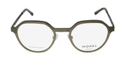 The frame is sold with demo lenses that have a logo stamped on them in ink. The frame can be fitted with real lenses at most optical stores. This frame provides comfortable fit and flatters a variety of face shapes. These glasses are made of aluminium. Frames made from aluminum are lightweight and highly corrosion-resistant. Aluminum is used primarily by high-end eyewear designers because of the unique look it creates. The frame has spring hinges. Spring hinge temples prevent you from stretching the fit of your glasses and ensure that they remain intact and not become loose or out of shape. Original case is included. The glasses are made in France.