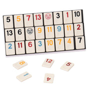 • Includes 104 numbered tiles in 4 colors, 2 false joker tiles, a complete set of tile holders, and 1 six-sided die