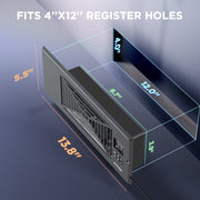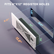 - Versatile Four-Way Vent Grille: Designed to fit 4’’x12’’ registers on either the wall or the floor. The 4-way vent grille is uniquely crafted at a 45° angle to facilitate airflow in all four directions, optimizing circulation in any room.