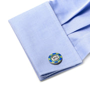 Try your luck with these $500 blue poker chip cufflinks. They are silver plated and have bullet back closures.