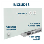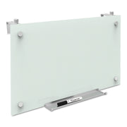 Have your very own message board, with a handy, personal-sized board that fits perfectly in cubicles, even if they have low walls. Tempered white glass surface dry-erase board is durable and will not stain or ghost; provides clean erasability. Sturdy enough to resist scratches and dents. Magnetic quality allows writing and posting of messages with dry-erase markers and rare earth magnets. Frameless board design is sleek and attractive. Two mounting hardware sets are included: adjustable brackets to hang board over cubicle walls and wall mount for traditional hanging. Writing in all colors is easily visible on the white glass board surface. 16:9 aspect ratio.
