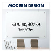 Ultra-modern, tempered-glass-surface whiteboard delivers high-quality performance. Durable, tempered-glass provides a smooth writing platform that erases cleanly after every use, preventing ghosting and staining. Write with any dry-erase marker. Less porous and absorbent than standard whiteboards, this board will maintain its impressive appearance for years to come, even under frequent-use conditions. Frameless board is a good fit for any contemporary office. Hardware is included for simple and secure wall mounting. Occasional cleaning is recommended for best performance.