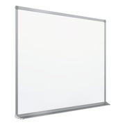 Ultra-durable, ultra-smooth whiteboard with porcelain surface will not scratch, dent, stain or ghost. Delivers superior performance in heavy-use active learning environments. Versatile steel-backed magnetic surface doubles as bulletin board. Easy-to-clean writing surface requires minimal use of Quartet® cleaning solutions. Hanging system and kit included, guaranteeing easy and accurate installation. Satin-finish wraparound frame construction. Modern, anodized aluminum frame complements contemporary classroom environments. Includes full-length marker rail.
