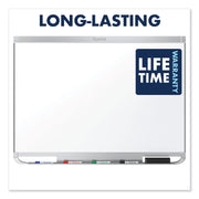 Prestige® 2 DuraMax® porcelain board features our most durable writing surface. Exceptionally resilient and smooth, the porcelain surface will not ghost, stain, scratch or dent over time, even after years of heavy use. The surface of this whiteboard is also magnetic so that it can double as a magnetic bulletin board. With a stylish frame and attached marker tray, this top of the line board is a useful addition to any office space. Hang board quickly and easily on any wall using the included pass-through mounting hardware. Quartet® Prestige 2 Connects™ accessories, sold separately, are also compatible with the Prestige 2 Connects™ board to increase ease-of-use and offer additional functionality. Minimal cleaning of board surface is recommended.