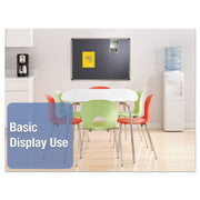 Highly durable embossed-foam bulletin board backed by high-density fiberboard secures documents with push pins. Delivers quality performance when communication and collaboration is needed in frequent-use office environments. Self-healing foam surface eliminates unsightly pin holes and will not fade or crumble like traditional cork boards, even after years of use. High-density backing for maximum pin-holding power, ensuring documents stay securely posted. Simple pass-through hanging system secures board to wall through four corners, guaranteeing easy and accurate installation. Euro™ frame provides sleek styling and maximum durability.