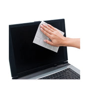 Effective and convenient method for cleaning! Heavily saturated wet wipe neutralizes static and removes dust, dirt and oil. Strong, dry, absorbent cloth dries and polishes screen to streak-free clarity. Ideal for large or heavily soiled computer and display screens, TVs and more. Not for use on nylon mesh/polarized antiglare screens. Perfect for work or home!