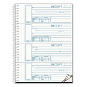 Rediform Spiralbound Unnumbered Money Receipt Book, Three-Part Carbonless, 7 x 2.75, 4/Page, 120 Forms