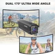 • INNOVATIVE TWO WAY ACTION CAMERA – Rexing A1 action camera records front and rear views together dual-lens (1920p+1080p) by using 2 cameras simultaneously. Capture your adventures with one camera recording where you’re going and one where you’ve been in any weather (WATERPROOF) without having to purchase two separate cameras.