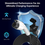 • 32 AMP W/ 17 FT EXTENSION – Fast charging speeds support currents up to 32 amp, which can fully power your vehicle in 1-2 hours. A heavy-duty 17ft outdoor weather proof cable allows you to charge your EV from a comfortable distance.
