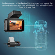 - BACK REARVIEW – Upgrade your V55 front-facing camera to have rear viewing recording capabilities. Rear viewing is ideal for monitoring what goes on behind you while driving.