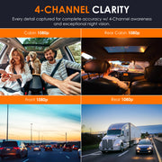 2″ LCD | Quad-Channel Dash Cam | 1080p Front, Rear, Cabin, and Exterior Coverage | 170 Degree | Wi-Fi | App Control | Optional GPS | 24-Hour Parking Surveillance | Advanced Collision Detection | 64GB Memory Card Included