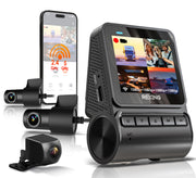 • Hassle-Free Installation and Flexible Camera Placement - The included adhesive mount and mounting plate ensure a stable installation. Flexible camera options allow for detailed recording from various angles, including a waterproof rear camera that can be mounted either on the rear windshield or above the license plate.