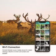 - WI-FI CONNECTION - download the app and view your recordings instantly with a Wi-Fi feature or a Built-in 2.4-inch LCD screen and speaker. AV output - connect directly to a TV to watch videos and photos. H2 trail cam supports up to 512GB SD card to record year-round.