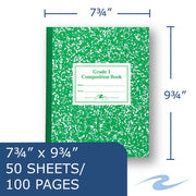 Roaring Spring Grade School Ruled Composition Book, Manuscript Format, Green Cover, 9.75 x 7.75, 50 Sheets