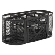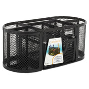 Rolodex Mesh Oval Pencil Cup Organizer, 4 Compartments, Steel, 9.38 x 4.5 x 4, Black