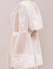 Romantic Sheer Lace Bridal Robe with cap and Bell Sleeves