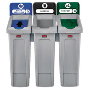 Rubbermaid Slim Jim Recycling Station Kit, 69 gal, 3-Stream Landfill/Mixed Recycling