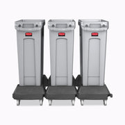 Slim Jim® Resin Dolly is designed to support and transport Vented Slim Jim® containers smoothly and efficiently through any commercial facility. Promotes recycling and improves productivity by offering the ability to transport multiple waste streams at one time. Features a side clip-on connection that allows you to train several dollies together for collection and transportation purposes. Foot pedal release makes disconnecting dollies quick and easy while structural foam construction ensures maximum durability in commercial environments.