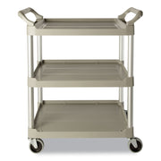 Rubbermaid Three-Shelf Service Cart, Plastic, 3 Shelves, 200 lb Capacity, 18.63" x 33.63" x 37.75", Platinum